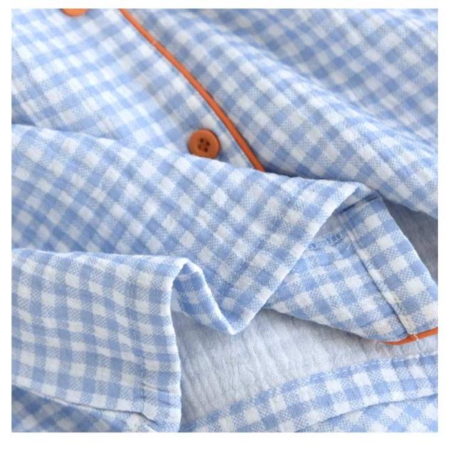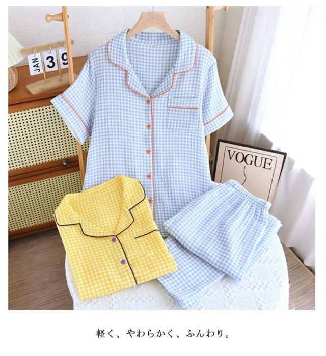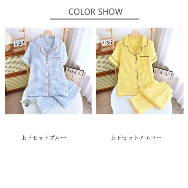 ダブルガーゼ 長パンツ ルームウェア セットアップ レディース 秋 ダブルガーゼ 折り襟 綿 夏 パジャマ 半袖 部屋着 寝巻き 2重ガーゼ パジャマ チェック柄 ウエストゴム ガーゼコットン 上下セット 柔らかい 可愛い ガーゼパジャマ 20代 30代 40代