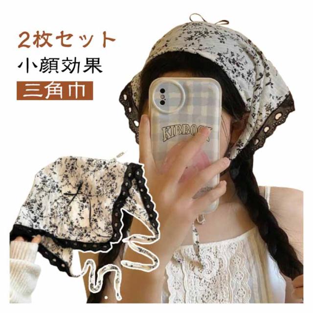 2枚セット バブーシュカ レディース 春 夏 レース カチューシャ かわいい 三角巾 可愛い 無地 シンプル ヘアアレンジ ヘアバンド 柔らか バンダナ 帽子 小顔効果 ヘアターバンヘアアクセサリー おしゃれ アウトドア 旅行 カジュアル 10代 20代 30代 40代 プレゼント ギフト