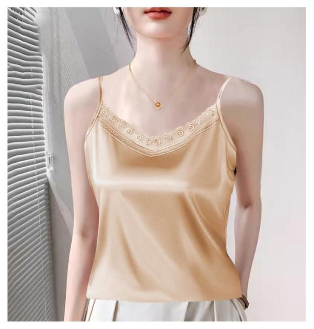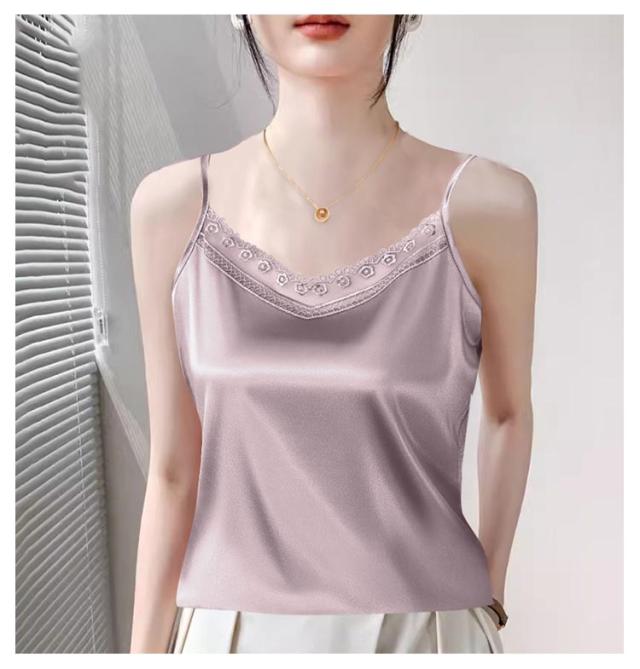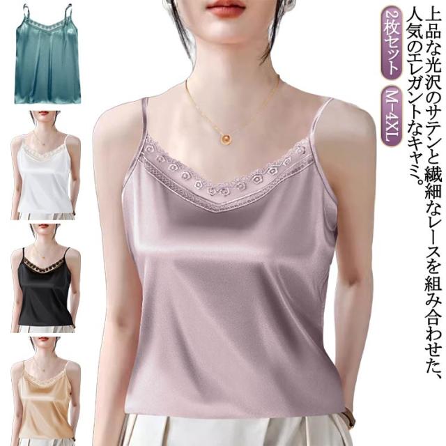 サテン キャミソール ブラウス レース ノースリーブ サテンキャミ きれいめ 刺? サテンキャミソール 胸元レース サテン Vネック トップス レディース 大人 タンクトップ 光沢感 大きいサイズ エレガント おしゃれ 20代 30代 40代