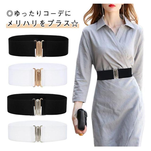 ストレッチベルト 黒 シルバー レディース ストレッチベルト 金 バックル エレガント コルセットベルト パーティードレス サッシュベルト 白 ワンピース チュニック ウエストマーク フォーマル キレイ サッシュベルト ハイウエスト 幅広 ゴムベルト ベルト