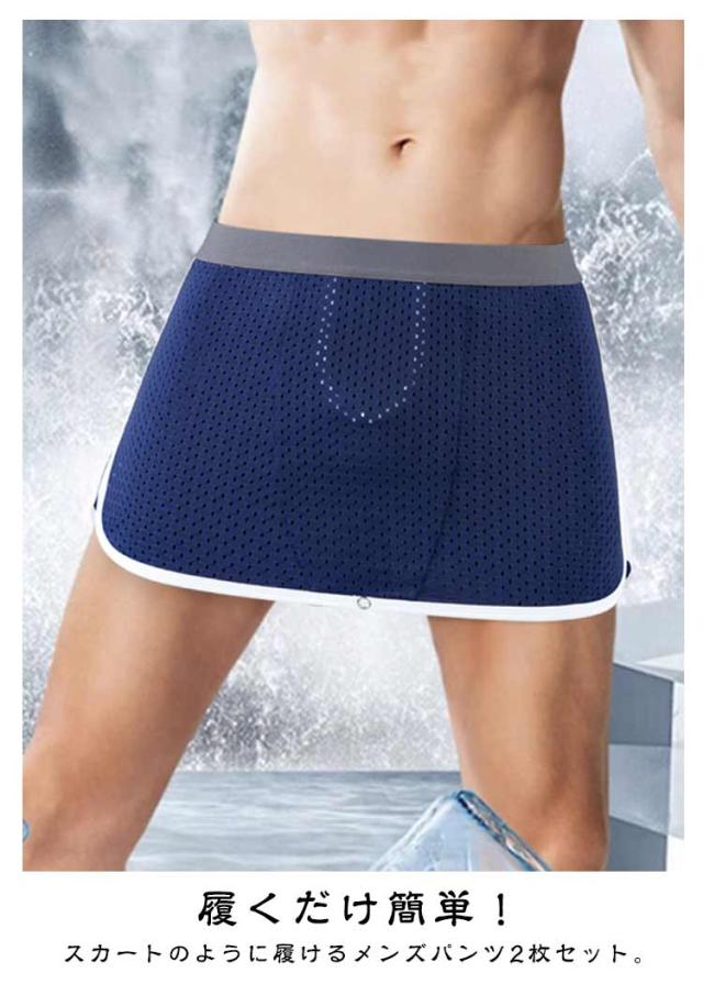 メンズ スカート 蒸れない 2枚セット!ボクサーパンツ 夏用 パンツ スカート 巻き ボタン付き 通気性 通気性 ショーツ 2way 2way 調節 接触冷感 アイスシルク インナー 吸汗速乾 トランクス 肌着 下着 分離型 ストレッチ 男性用