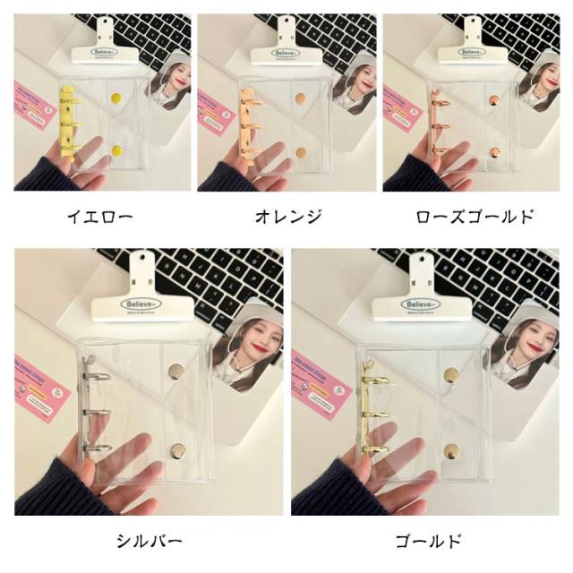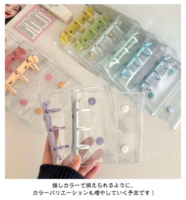 3穴 手帳型 カスタマイズ手帳 クリア バインダー 透明 シール シール手帳 透明バインダー 透明 コンパクト手帳 ボタン付き 【リフィル20枚付き】シール帳 アクスタケース トレカ収納 推し カラー ファイル 推し活グッズ 持ち運び オタ活グッズ かわいい PVC