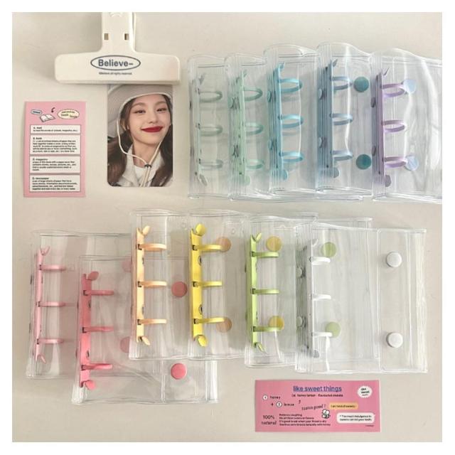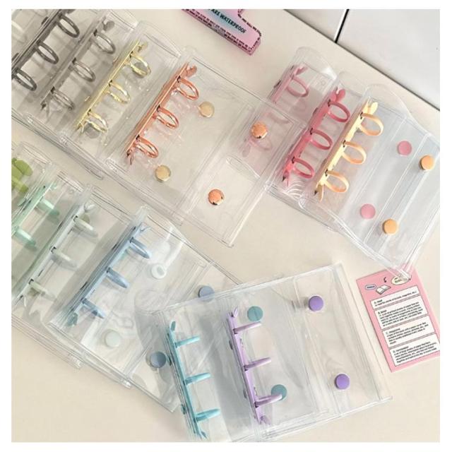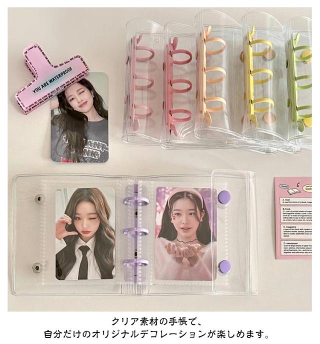 | 【防水PVC素材 透明シール帳 全15色選べる リフィル20枚付き】 クリア素材の手帳で、自分だけのオリジナルデコレーションが楽しめます。 小さくてかわいいサイズのクリアバインダー。持ち運びにピッタリで、ちいさなカバンにも入ります。 カードスリーブリフィルが20枚付属。リフィルにはトレカやシール、チェキ、 チケットなども入れられて便利。 推しカラーで揃えられるように、カラーバリエーションも増やしていく予定です! | |