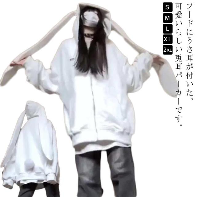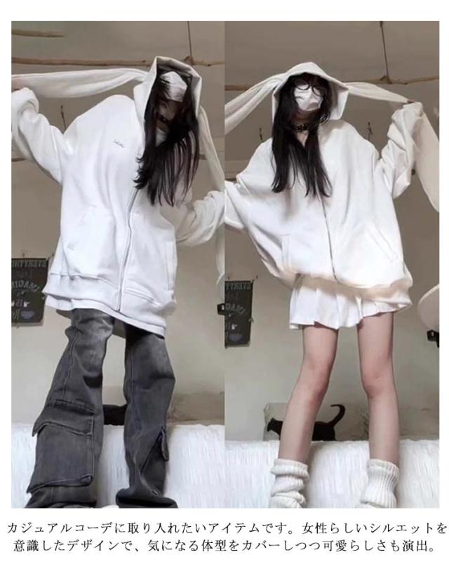兎耳パーカー レディース 垂れ耳 ロングパーカー 兎耳パーカー ストリート系 うさぎ耳 秋服 かわいい ガーリー フード付き 長袖 体型カバー カジュアル ゆったり パーカー うさ耳 大きいサイズ 春 秋 冬 地雷系 量産型 原宿風 ジップアップパーカー サブカル系 服 アウター