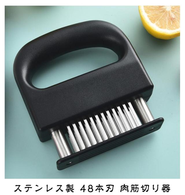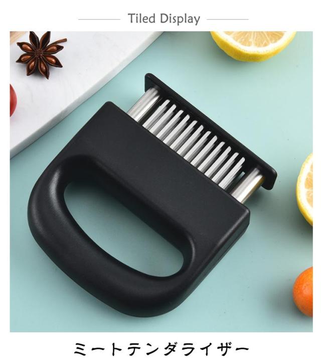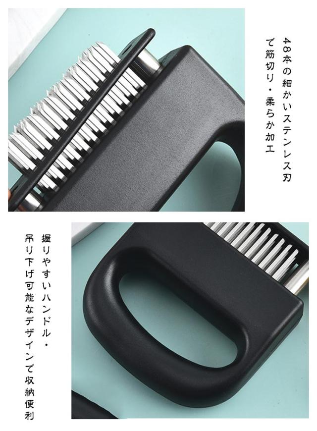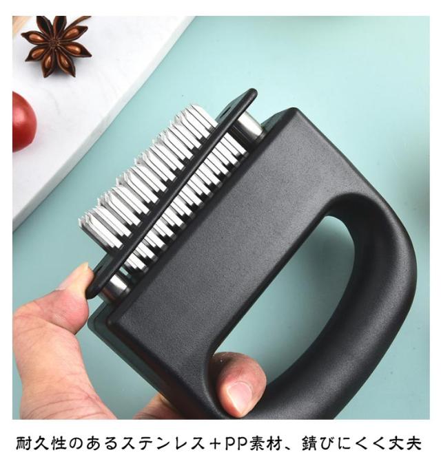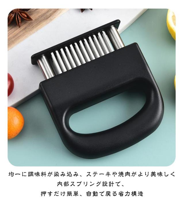 | ミートテンダライザー ステンレス製 48本刃 肉筋切り器 48本の細かいステンレス刃で筋切り・柔らか加工 均一に調味料が染み込み、ステーキや焼肉がより美味しく 内部スプリング設計で、押すだけ簡単、自動で戻る省力構造 耐久性のあるステンレス+PP素材、錆びにくく丈夫 握りやすいハンドル・吊り下げ可能なデザインで収納便利 | |