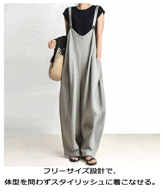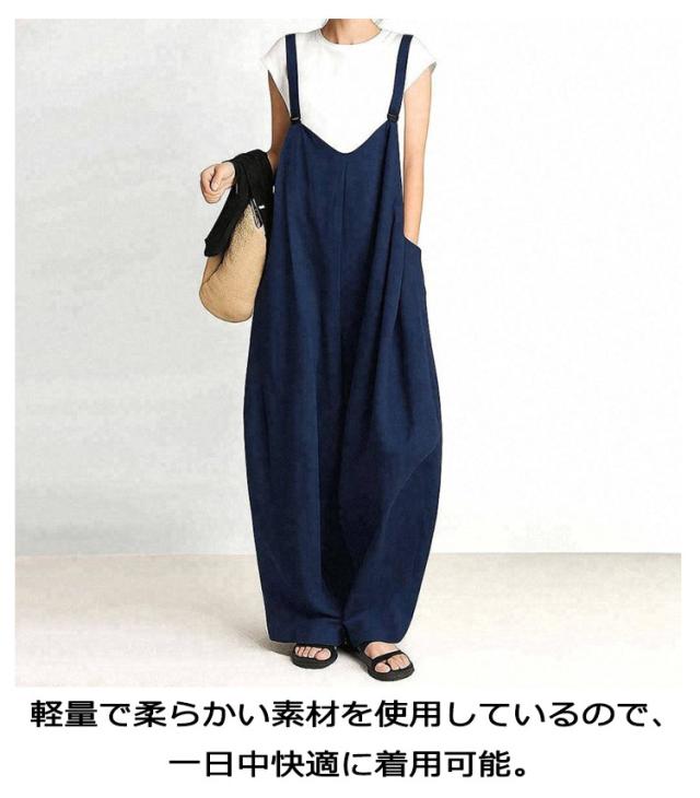 軽量 レディース ワイドパンツ 便利ポケット オーバーオール 春夏 無地 薄手 サロペット ゆったり 大きいサイズ フリーサイズ つなぎ 通学 通勤 オーバーオール 動きやすい 長ズボン カーキ グレー 着回し ネイビー 夏服 春服 秋服