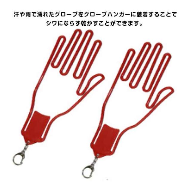 | 汗や雨で濡れたグローブをグローブハンガーに装着することで シワにならず乾かすことができます。 フック付きなので、ゴルフバッグやスポーツバッグにも付けられて 紛失しづらく、グローブの型崩れを防ぎ、綺麗な形でキープしてくれます。 自宅で保管しておく際にも便利です。 ゴルフグローブだけでなく、様々なグローブで使用できるので プレゼントやゴルフコンペの景品としてもオススメです。 | |