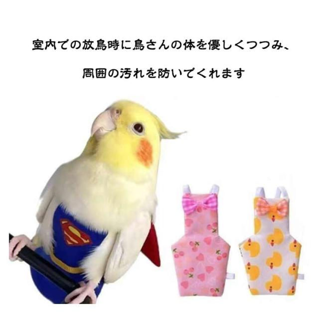 【2点セット】鳥 フライトスーツ 小鳥 ハーネス 服 鳥用おむつ ペット服 おむつ インコ 鳥用品 【2点セット】鳥 インコの服 かわいい リボン レモン スイカ ピーチ パイナップル セキセイインコ ボタンインコ