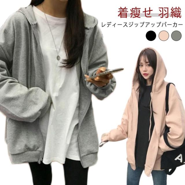 秋 ジップパーカー 春 ジップアップパーカー スウェット レディース 薄手 フード付き カジュアル ジップアップ アウター ジップパーカー 着?せ パーカー 長袖 羽織 おしゃれ ライトアウター ゆったり 大きいサイズ 韓国ファッション おしゃれ 可愛い きれいめ 無地