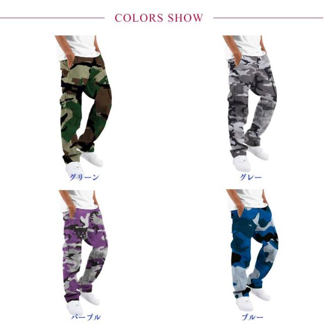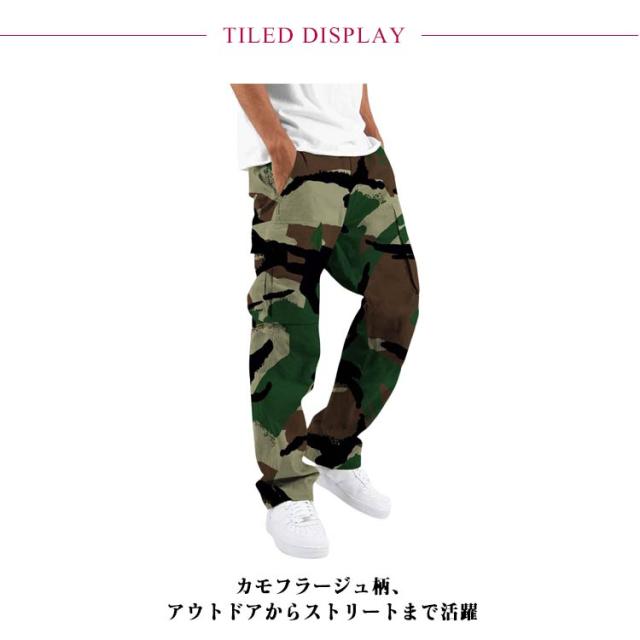 | メンズ 迷彩カーゴパンツ 選べる8色 S-3XL カモフラージュ柄、アウトドアからストリートまで活躍 カーゴポケット付きで収納力抜群 ウエストゴム仕様、快適なフィット感 ストレートシルエットで動きやすく脚長効果も◎ 通気性の良いコットン素材、春夏秋に最適 | |