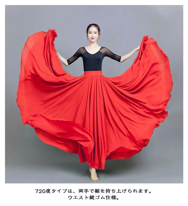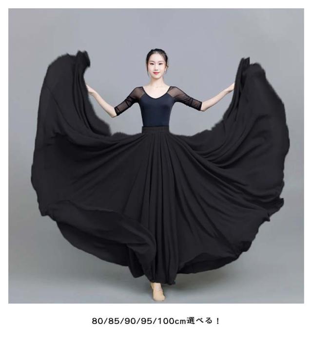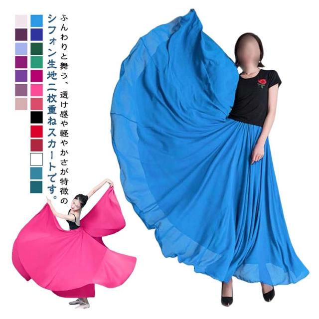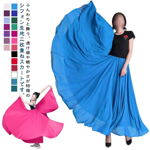 ダンス衣装 サーキュラースカート 社交ダンス パソドブレ シフォン ヒップホップ ロングスカート 全円 ワンピース マキシ丈 ベリーダンス 衣装 ダンス衣装 コーラス ステージ衣装 広がる 720度 発表会 文化祭 群舞 ブラック ホワイト ブルー