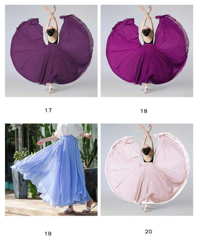 | ふんわりと舞う、透け感や軽やかさが特徴のシフォン生地二枚重ねスカートです。 ベアトップ風にワンピースにすることも可能ですので、群舞衣装としても人気です。レッスン着やダンス衣装、流行りのコンテンポラリーダンスにも! 720度タイプは、両手で裾を持ち上げられます。 ウエスト総ゴム仕様。 80/85/90/95/100cm選べる! | |