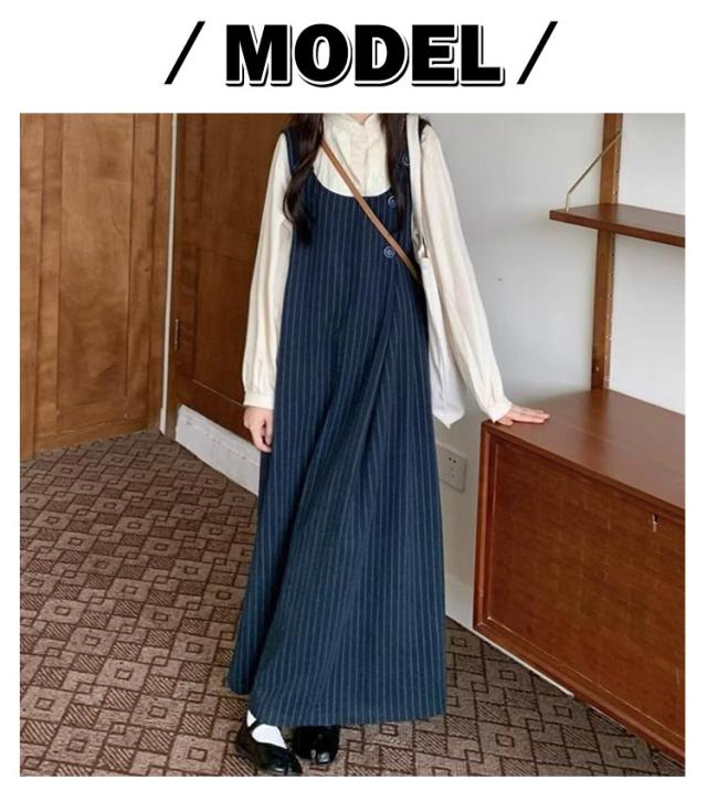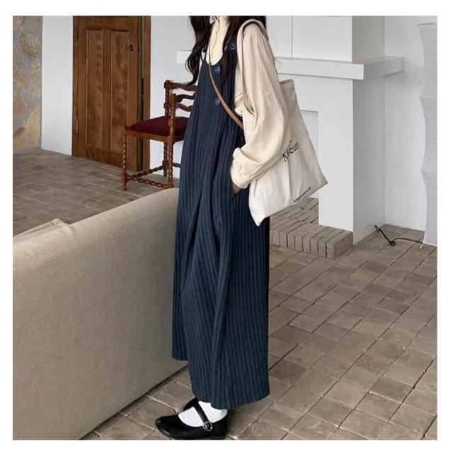 ジャンスカ ゆったり ジャンパースカート ストライプ柄 スカート サロペットスカート サロペット サロペットスカート ワンピース 春 大人 キャミソールワンピース ワイド 秋冬 ロングワンピース レディース 体型カバー ロング カジュアル おしゃれ ネイビー 紺