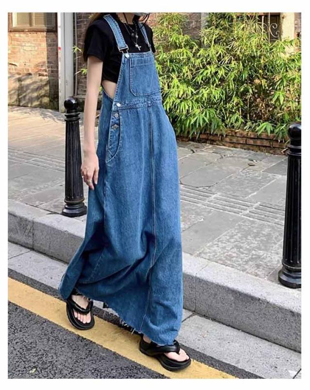 デニム レディース ジャンスカ バックスリット ロング サロペット デニム スカート デニムサロペットスカート ゆったり オールインワン ワンピース 春夏秋冬 オーバーオール フレア きれいめ 大人 カジュアル