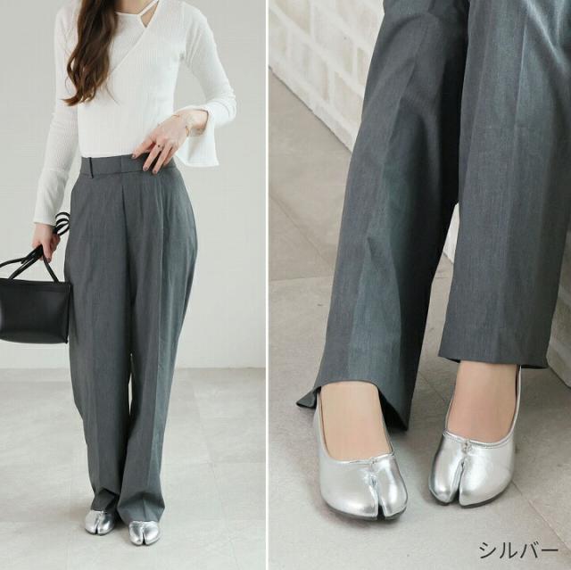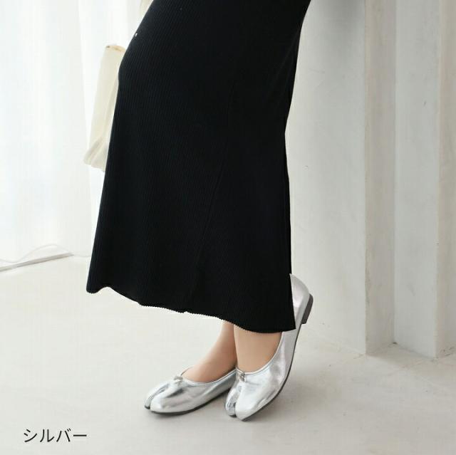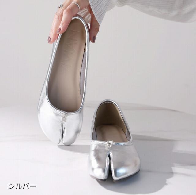 【MAX10%OFFクーポン】 足袋バレエ 足袋 パンプス バレエシューズ 痛くない フラットシューズ ぺたんこ ローヒール 疲れにくい 大きいサイズ ブラック 黒 タビ タビバレエ シルバー メタリック バレエコア V1521AL