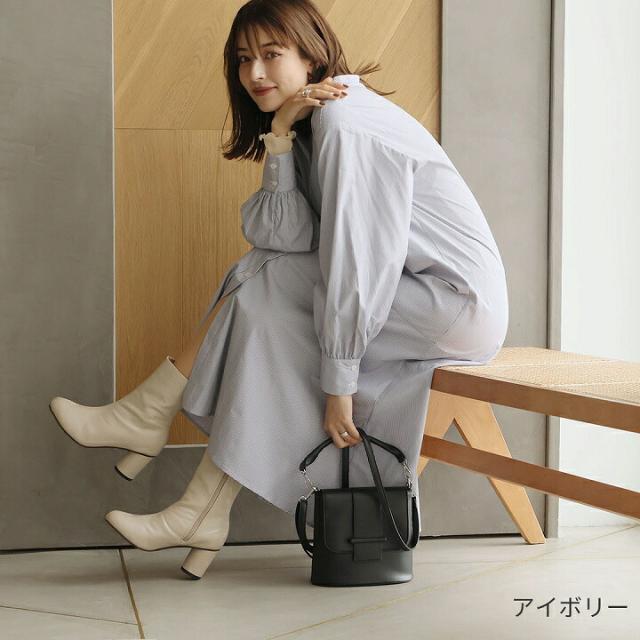 ・ルックスはもちろん、足の指から甲まで包み込むデザインと安定感のある円柱ヒールで脱げにくく履き心地も◎