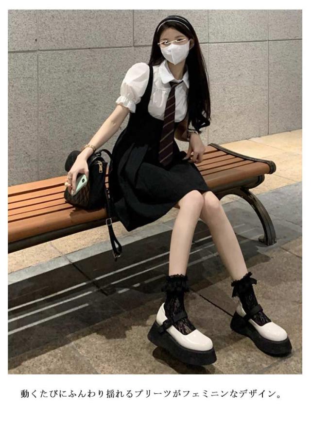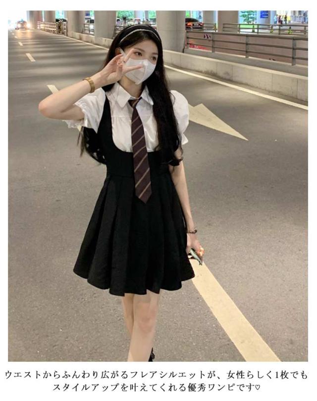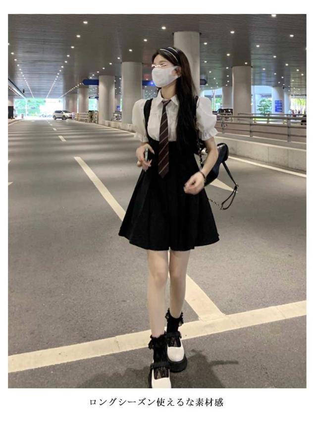 春夏秋 ミニ丈 ジャンパースカート レディース サロペットスカート ジャンパースカート Aライン ワンピース ミニワンピース サロペスカート ジャンスカ サロペット ミニスカート ハイウエスト オールインワン プリーツ きれいめ オーバーオール 韓国風 大人可愛い 黒 ブラック