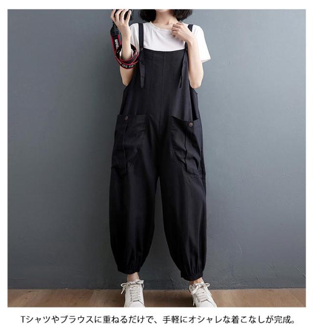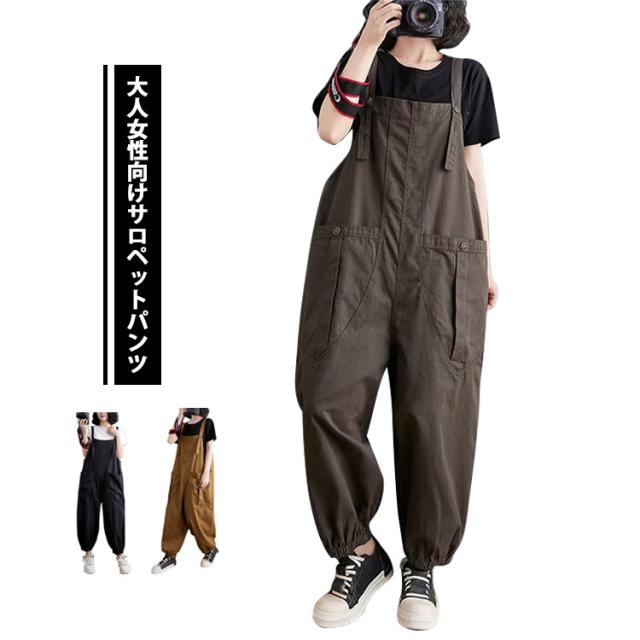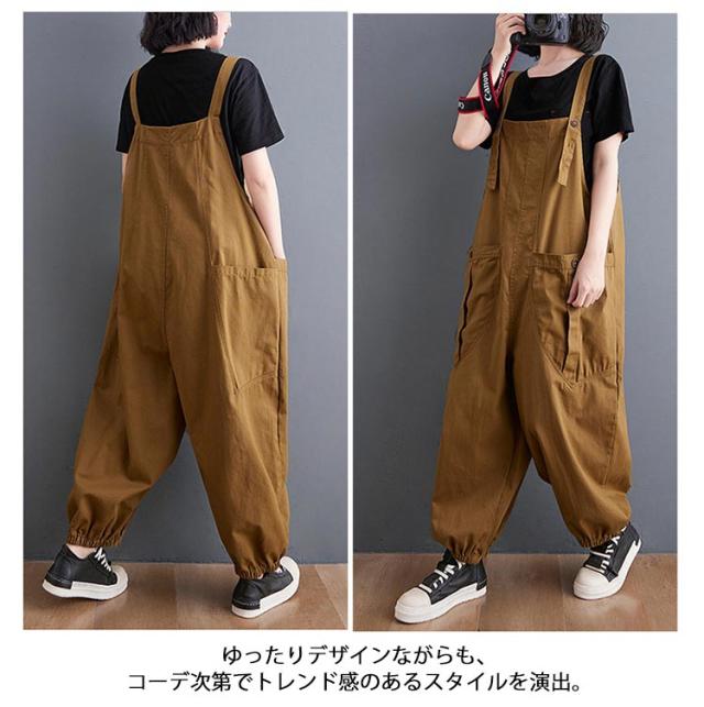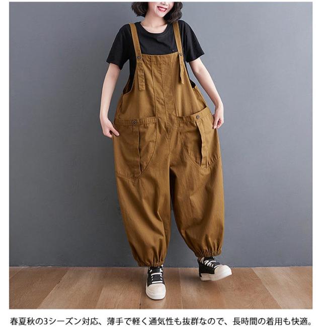 サロペット レディース ナチュラル オールインワン 体型カバー 無地 脚長効果 通勤 サロペット 大きいサイズ 通学 春夏秋 カジュアル シンプル ポケット付き オーバーオール 楽ちん 大人可愛い 20代 30代
