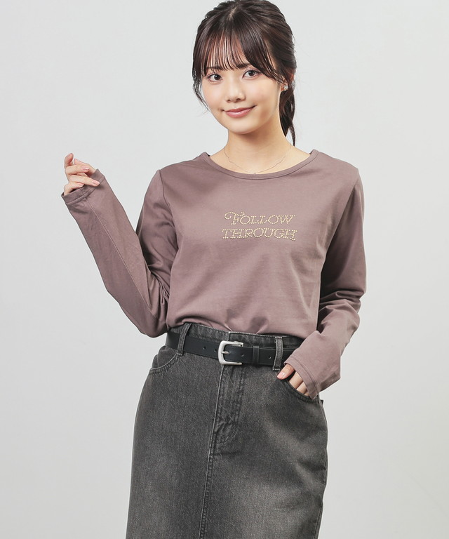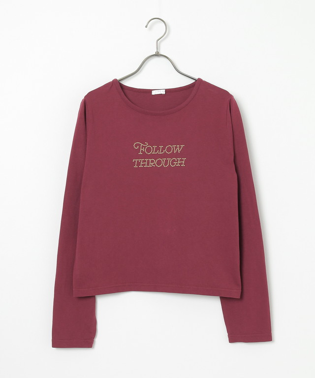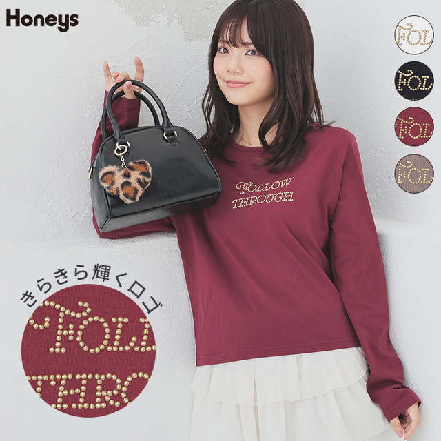 トップス Tシャツ ロンT 長袖Tシャツ カットソー 長袖 コットン 綿 ロゴ ラインストーン USAコットン レディース Honeys ハニーズ ストーンロゴT