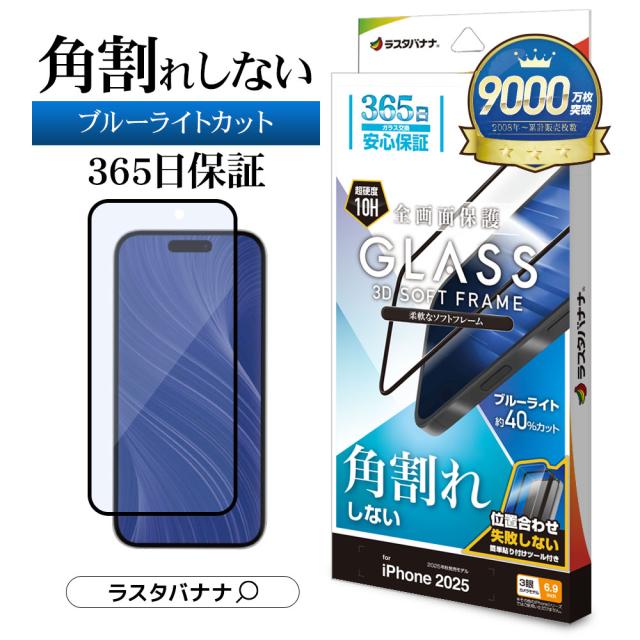 【送料無料】iPhone Air 17 Pro Max ガラスフィルム 全面保護 ブルーライトカット 高光沢 角割れしない ソフトフレーム 0.33mm 硬度10H 貼り付けガイド枠付き アイフォン 保護フィルム ラスタバナナ SE4999IP5C SE5024IP5D