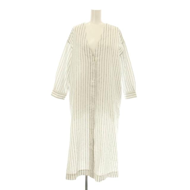 【中古】アーバンリサーチ ドアーズ FORK&SPOON リネン混ガウンワンピース シャツワンピース マキシ 長袖 ストライプ