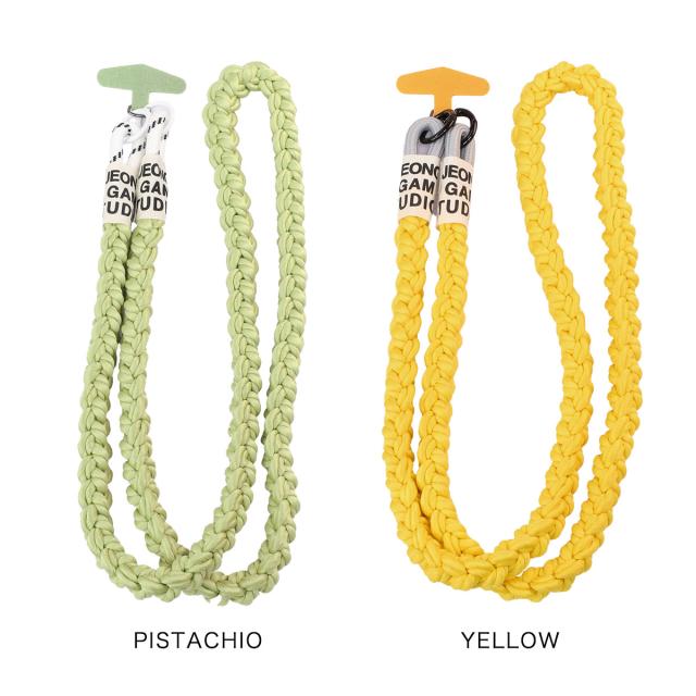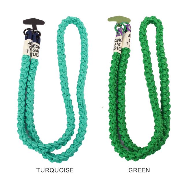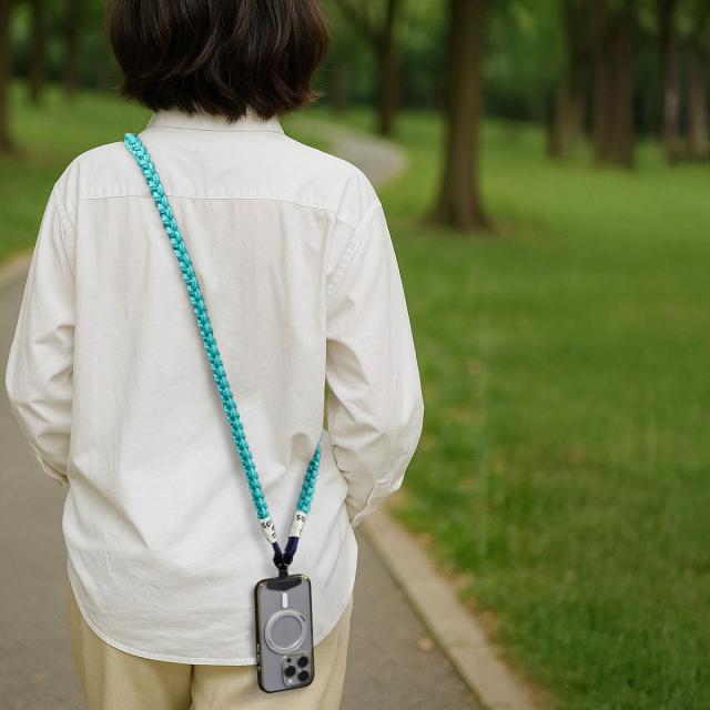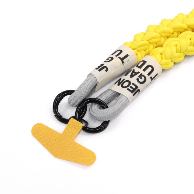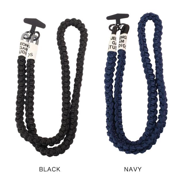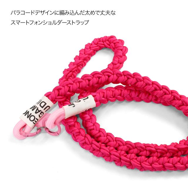 幅広のパラコードを丁寧に編み込んだ太めのスマホショルダーストラップ。