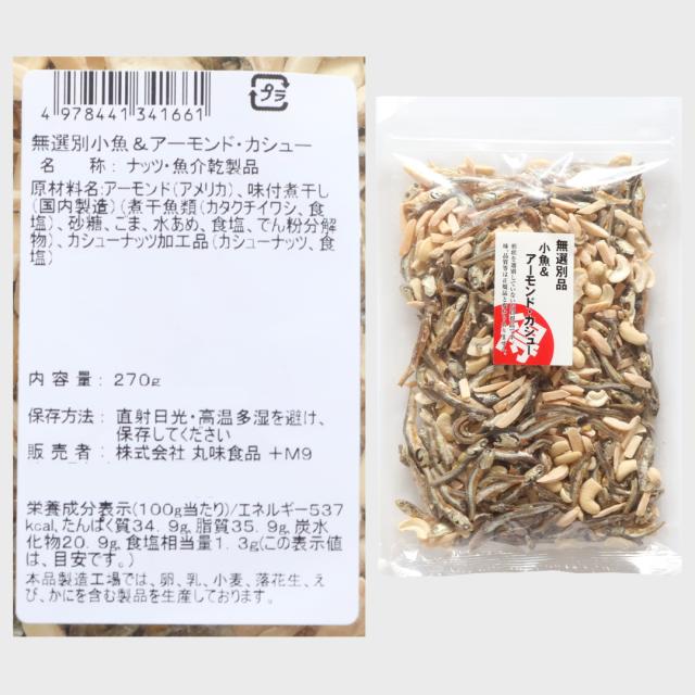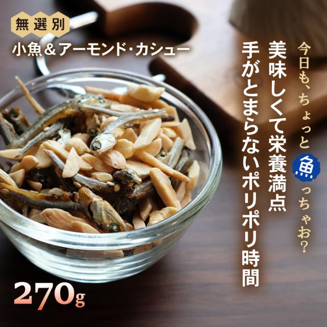 小魚アーモンド 割れ カシューナッツ 270g おやつ 小魚 アーモンド 無選別 おつまみ 片口いわし こざかなアーモンド 食品 グルメ お菓子 ミックスナッツ 送料無料 カルシウム タンパク質 ダイエット チャック付き お徳用 大容量 訳あり