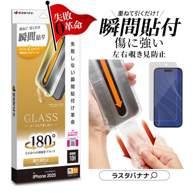 【送料無料】iPhone Air 17 Pro Max ガラスフィルム 平面保護 のぞき見防止 覗き見防止 左右 180° 貼付革命 瞬間貼り 失敗しない瞬間簡単貼り付け レボリューション 0.33mm 硬度10H アイフォン 保護フィルム ラスタバナナ MTK5004IP5C MTK5032IP5D