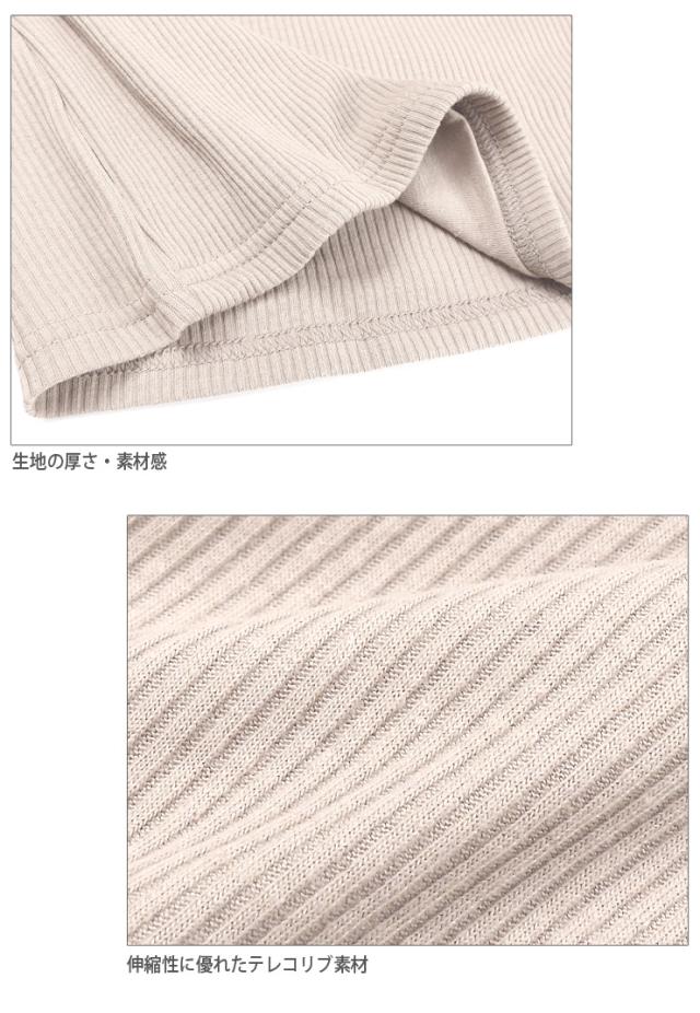 胸元のシームレスカットが美しいデコルテシルエットを演出し、シンプルながらも洗練された印象を与えます。 テレコリブ素材は肌触りが良く、伸縮性があるので体に程よくフィットします。 前身頃のみに裏地付きなので、バスト部分が透けにくく、安心して着用できます。 カジュアルにもフォーマルにも合わせやすいデザインで、毎日のコーディネートに活躍します。