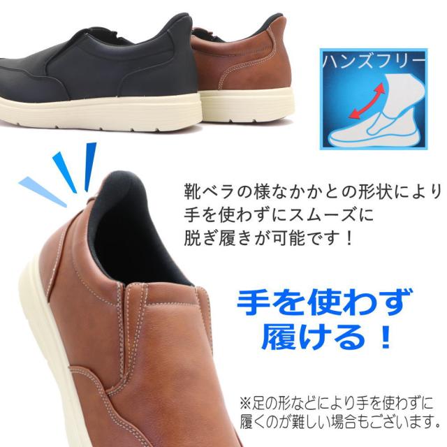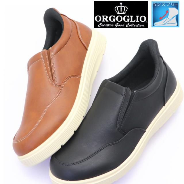 即納 手を使わず履ける メンズ 防水 スリッポン カジュアルスニーカー ハンズフリー ORGOGLIO オルゴリオ ふかふかインソール 消臭 抗菌 No.7522