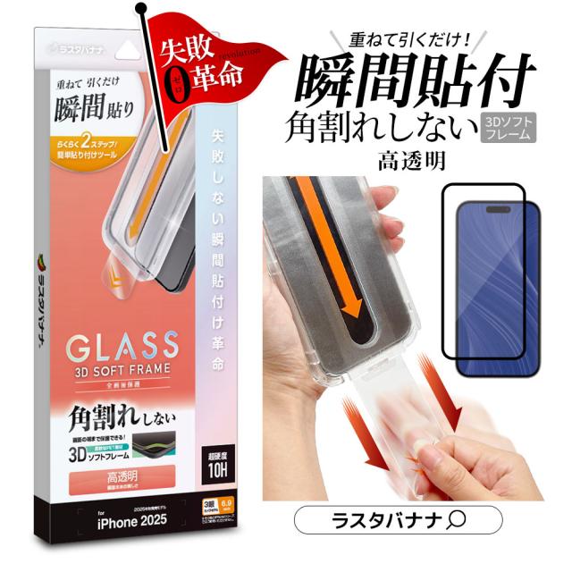 【送料無料】iPhone Air 17 Pro Max ガラスフィルム 全面保護 高光沢 高透明 クリア 貼付革命 貼り付け革命 瞬間張り 失敗しない レボリューション 角割れしない 0.25mm 硬度10H アイフォン 保護フィルム ラスタバナナ MTK5005IP5C MTK5035IP5D