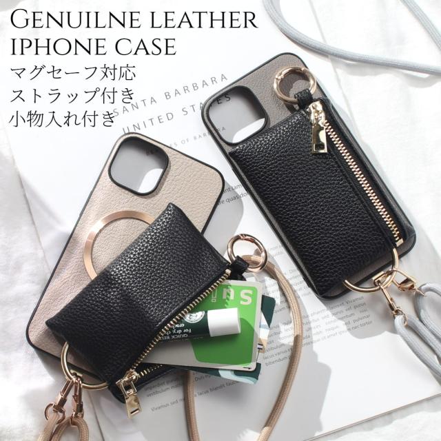 iphone ケース レザー iphone17 iphone16 iphone15 iphone14 小物入れ ショルダー ストラップ 本革 17 16 15 14 13 mini マグセーフ対応 magsafe ゴートレザー air 17pro 16pro 15pro 財布 カード収納 大容量 ストラップ付き 肩掛け マグネット 17プロ メタリック 送料無料