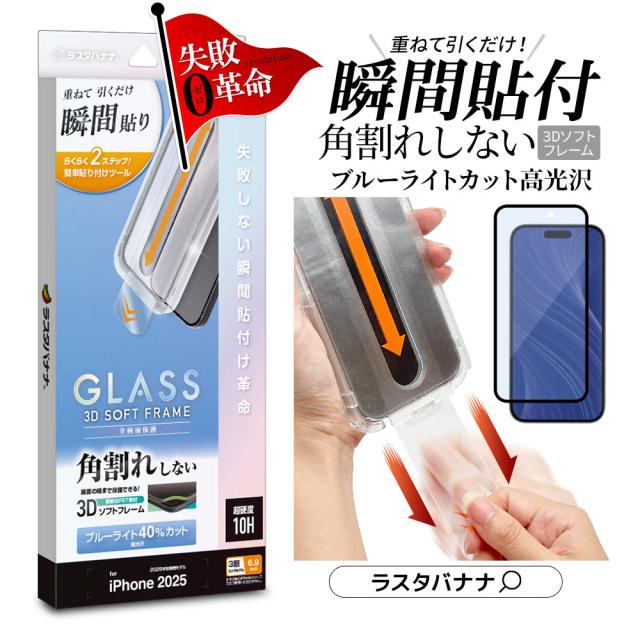 【送料無料】iPhone Air 17 Pro Max ガラスフィルム 全面保護 ブルーライトカット 高光沢 貼付革命 貼り付け革命 瞬間張り 失敗しない レボリューション 角割れしない 0.25mm 硬度10H アイフォン 保護フィルム ラスタバナナ MTK5006IP5C MTK5036IP5D