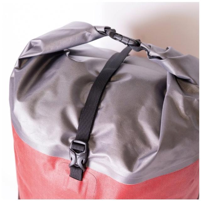 本体のロールトップ部には柔軟性の高い素材を採用し気密性を上げている。