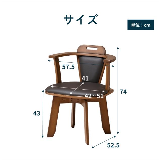 ダイニングチェア 回転 肘付き 回転椅子 PUレザー 1脚 回転チェア ダイニング チェア デスクチェア キャスターなし 回転式 立ち上がりやすい 一人掛け 食卓椅子 撥水 天然木 シンプル
