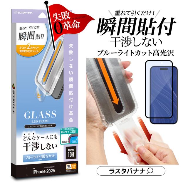 【送料無料】iPhone Air 17 Pro Max ガラスフィルム 全面保護 ブルーライトカット 高光沢 貼付革命 貼り付け革命 瞬間貼り 失敗しない レボリューション 干渉しない 絶妙設計 2.5Dフレーム 0.33mm 硬度10H アイフォン 保護フィルム ラスタバナナ ZS5010IP5C ZS5041IP5D