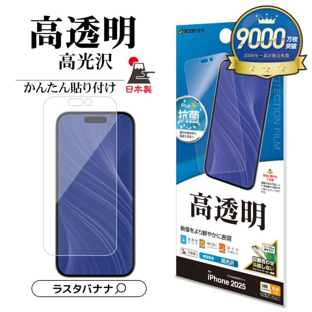 【送料無料】iPhone Air iPhone17 Pro Max フィルム 平面保護 高光沢 高透明 クリア 抗菌 日本製 貼り付けガイド アイフォン 保護フィルム ラスタバナナ P5011IP5C P5044IP5D