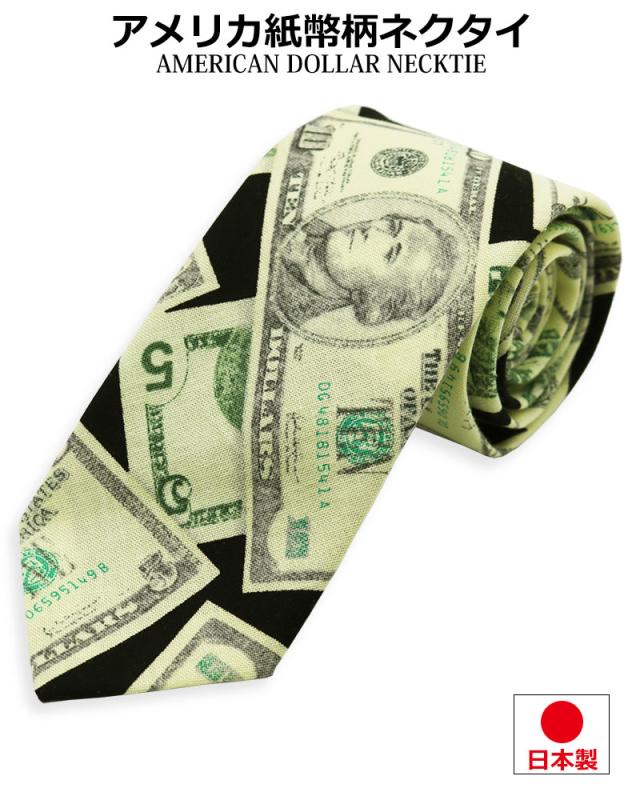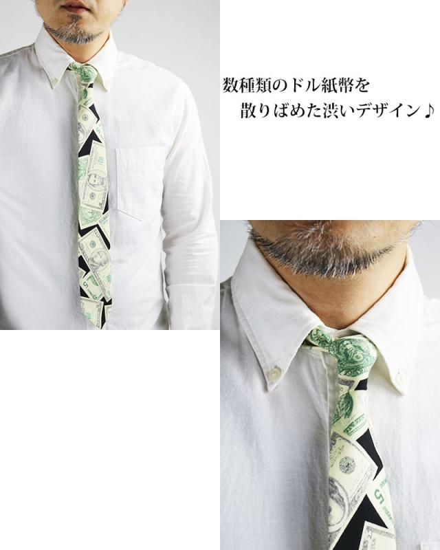 ドル柄 アメリカ紙幣 ネクタイ 日本製 6cm幅 細め ナロータイ メンズ レディース