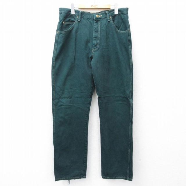 古着 ラングラー Wrangler ジーンズ メンズ コットン 濃緑 グリーン デニム W36 中古 ボトムス ジーパン Gパン ロング パンツ 中古 古着