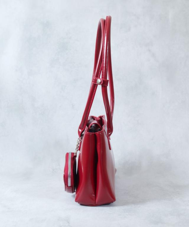 【ハートチャーム付き♪/艶感フェイクレザーが大人かわいいボストンバッグ/ハンドバッグ】