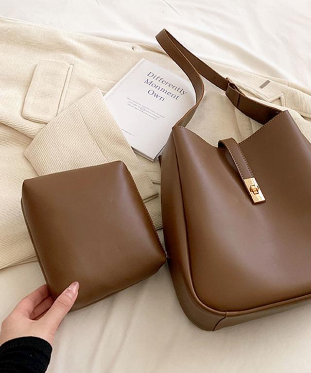 【ポーチ付♪ターンロックベルトがおしゃれなハンドバッグ/トートバッグ】