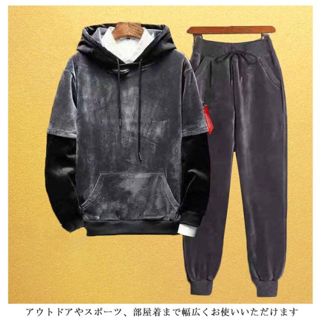 メンズ 部屋着 パーカー セットアップ 裏ボア 長袖 セットアップ ルームウェア ジャージ もこもこ スポーツウェア 厚手 裏起毛 ジャージ スウェット 暖かいパンツ フード付き 秋冬 防寒 ロングパンツ ジョガーパンツ 上下セット 運動着 釣り 秋 冬 無地 大きいサイズ