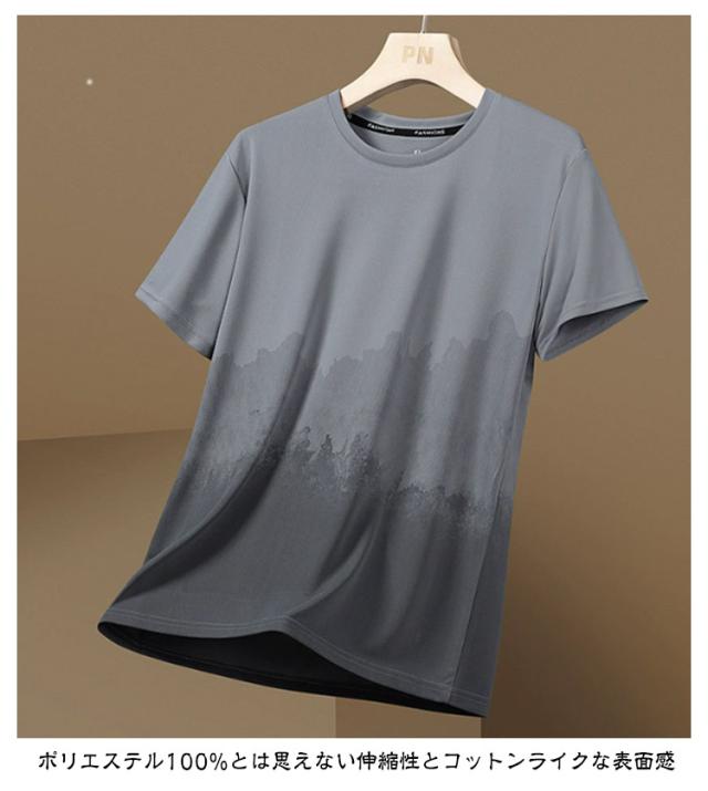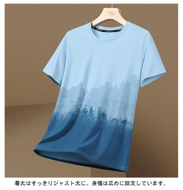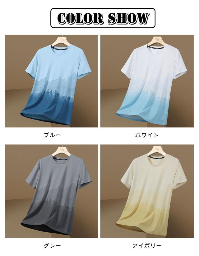 ひんやり ビッグtシャツ おしゃれ 接触冷感 カットソー メンズ 半袖tシャツ Tシャツ グラデーション 快適 カジュアル ゆったり 丸襟 クルーネック 夏服 半袖 軽い 柔らかい 涼しい 吸水速乾 春 夏 秋
