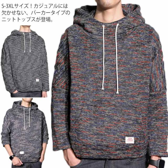 《送料無料》S-3XLサイズ!ニットパーカー メンズパーカー プルオーバーパーカー パーカー メンズ ニット プルオーバー フード付き 裏起毛 ボリュームカラー 春 秋 冬