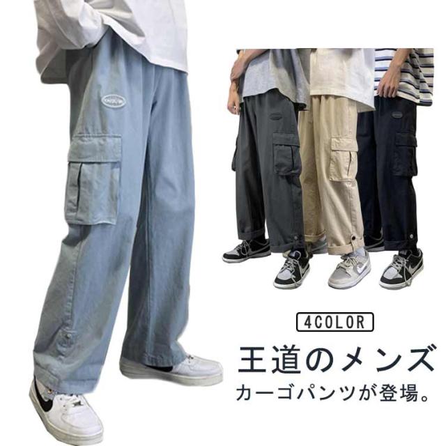 ワイドパンツ メンズ 作業着 通学 ゆったり カーゴパンツ カジュアルパンツ 大きサイズ 長ズボン 春 秋 ゆったり ロング丈 カーゴパンツ ストリート系 メンズファッション 20代