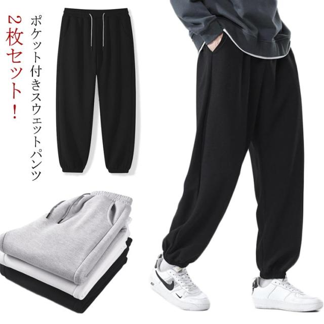 パンツ メンズ ポケット付きスウェットパンツ2枚セット! ワッフル レディース 秋 ジャージ スウェット 夏 白 グレー スウェットパンツ 無地 部屋着 ルームウェア ペア パジャマ 春 カジュアル 下 冬 服 黒 アウトドア スポーツ ゆったり ズボン ロングパンツ