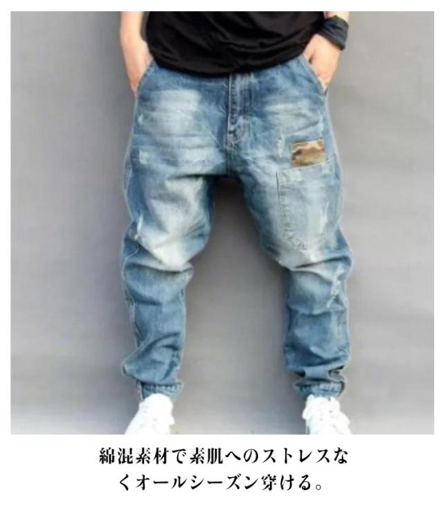 秋 ルーズ デニム ゆったり サルエルパンツ サルエルパンツ ジョガーパンツ 春 夏 メンズ デニムサルエル ジーパン ジーンズ Gパン テーパード パンツ ブルー 大きいサイズ ポケット付き デニムパンツ ストリート カジュアル 韓国 かっこいい