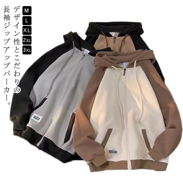 パーカー ゆったり プルパーカー メンズパーカー 薄手 メンズ スウェット お洒落 ジップアップ ゆるパーカー 薄手パーカー フード付き 長袖 プルオーバー トップス シックカラー 春秋 秋新作 M L XL 2XL 3XL
