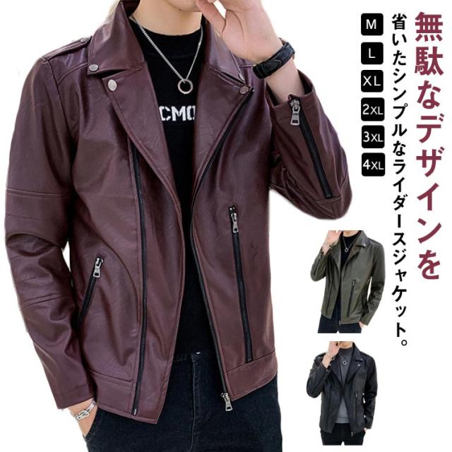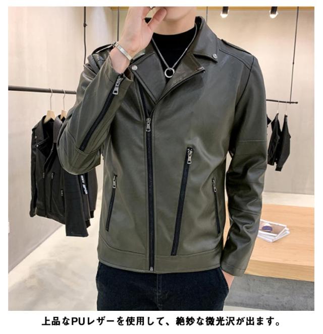ライダースジャケット メンズ ダブル 細身 フェイクレザー スタジャン ジャケット ブルゾン フェイクレザージャケット レザージャケット PU 合皮 ジップアップ ブルゾン カジュアル アメカジ バイカー 韓国系 秋 冬 服 お洒落