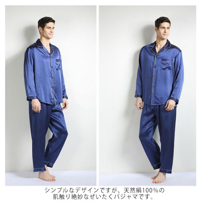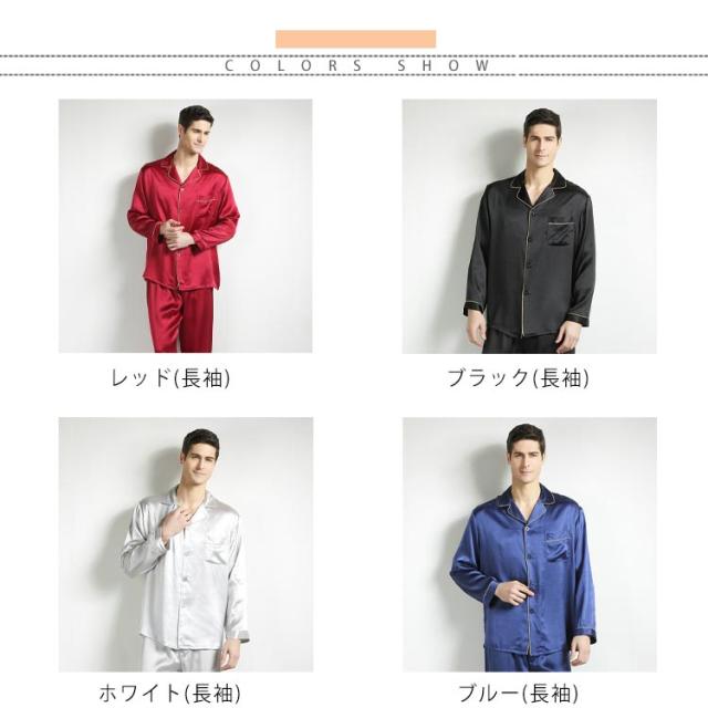 パジャマ メンズ シルク100% パジャマ 光沢 半袖 長袖 トップス ロングパンツ 上下セット 天然絹100% ナイトウェア ルームウェア 部屋着 リラックスウェア 前開き 長袖 敏感肌 襟付き 上品 高級 無地 男性 紳士用 プレゼント ギフト 父の日 誕生日 春 夏 秋